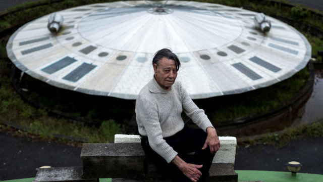 Ballesteros é músico, escritor, creador e sobre todo coñecido por vivir tocar no seu saxo nesta especie de prato volante, un complexo case "hermético", propio dunha película de ciencia ficción que respira tranquilidade.
