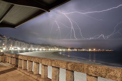 O domingo, a tormenta descargou raios no sur da provincia e na zona do Salnés, como se mostra na foto tomada por BlackFrameFilm en Sanxenxo.