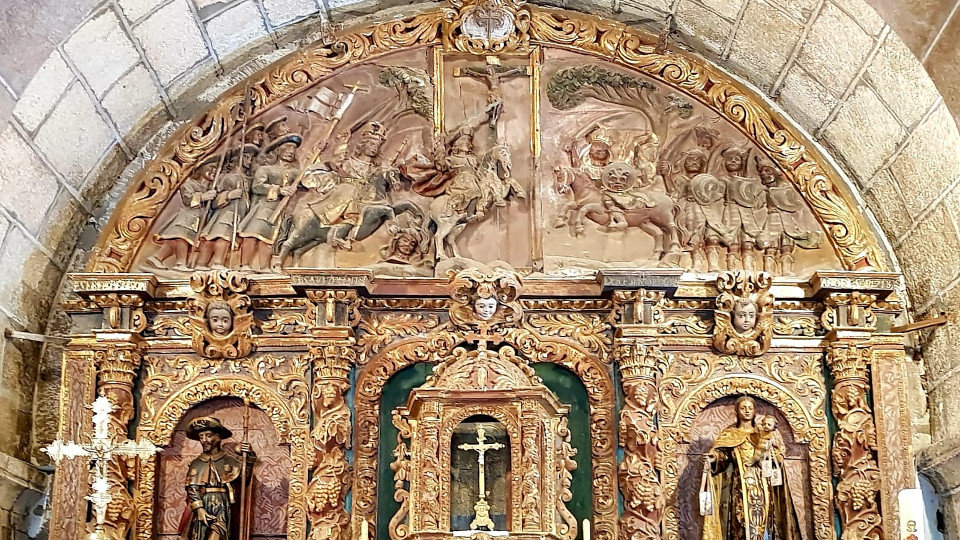"UNA AUTÉNTICA JOYA". Así define el médico e historiador José Carro Otero, presidente de la Real Academia de Medicina y Cirugía de Galicia, el retablo mayor de la iglesia de Santiago de Taboada. El templo, enclavado en el corazón del Camino de Invierno a su paso por el concello pontevedrés de Silleda, pertenece a la diócesis de Lugo y durante tres siglos mantuvo un tesoro oculto a sacerdotes, peregrinos, fieles e incluso estudiosos que pasaron por allí, que solo reparaban en una tosca talla de Sansón. Hasta que el ojo experto de Carro Otero se paró en él y lo descubrió: el altar mayor guarda la que posiblemente sea la única representación de la batalla de Clavijo en la que los dos ejércitos, cristiano y musulmán, están a punto de enfrentarse.
