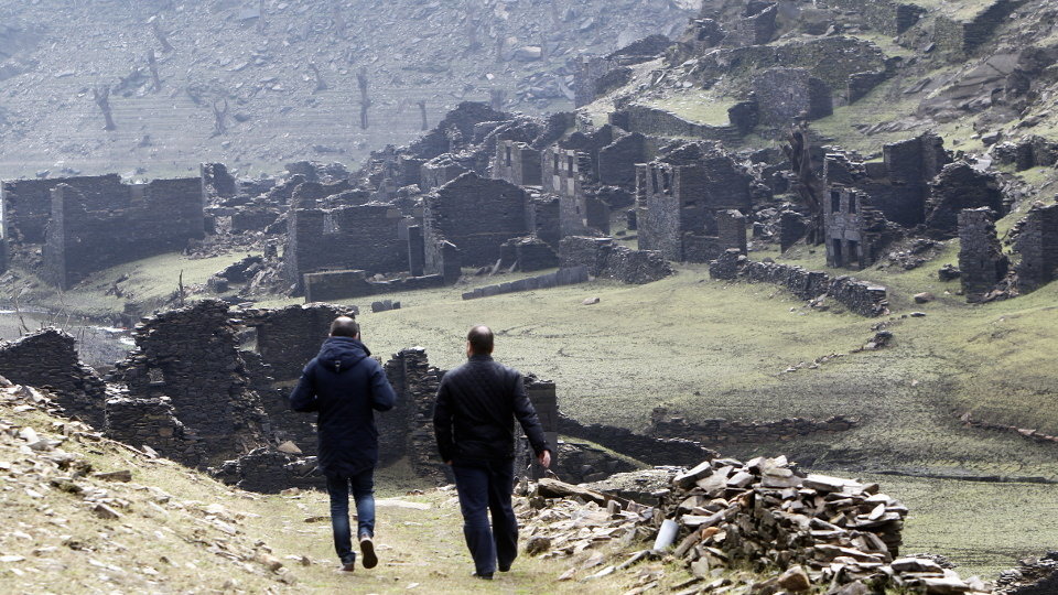 El viejo Portomarín, a punto de sumergirse bajo el agua