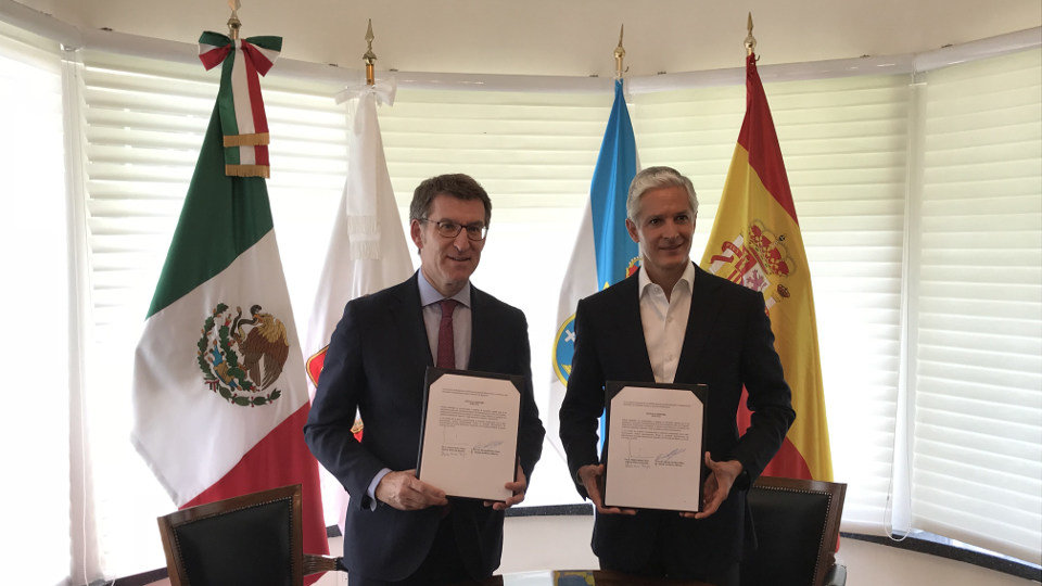 O presidente da Xunta, Alberto Núñez Feijóo, e o gobernador do estado de México, Alfredo del Mazo. EFE