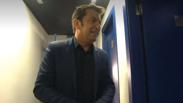 Arturo Valls acompaña a un concursante al baño en mitad de '¡Ahora caigo!'