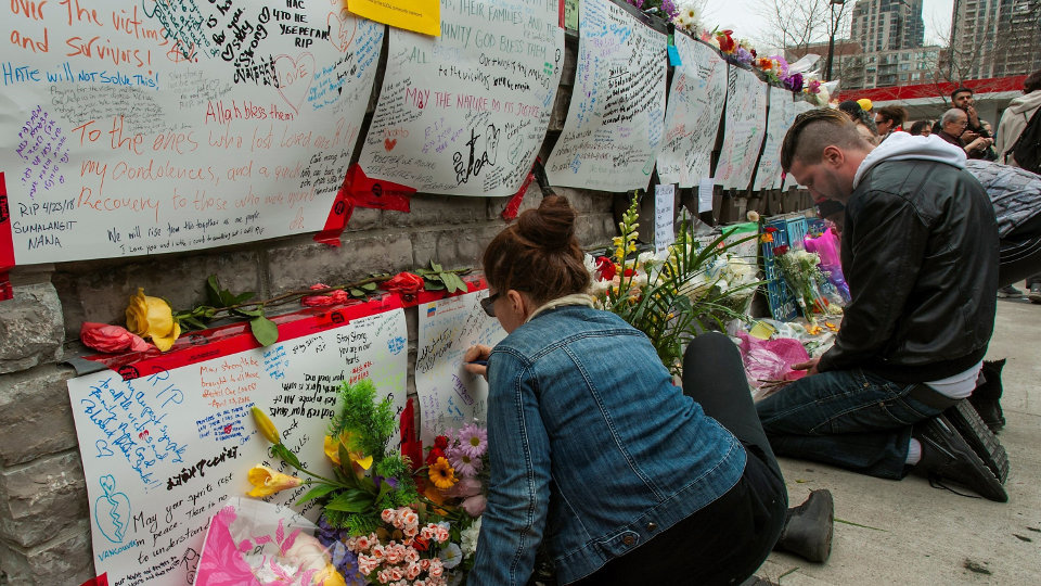 Mentres, no lugar no que a furgoneta empezou a arroiar transeúntes nunha céntrica rúa na zona norte de Toronto, amenceu este martes con decenas de ramos de flores e pancartas escritas a man recordando ás vítimas e lanzando mensaxes de apoio aos seus familiares.
