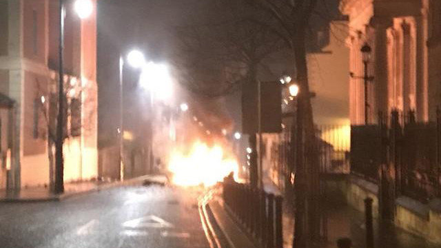 El Servicio de Policía de Irlanda del Norte (PSNI, en inglés) colgó en su cuenta de la red social Twitter una fotografía de un vehículo en llamas y pidió a la gente que se alejara del lugar de la explosión, en la calle Bishop Street de Londonerry.