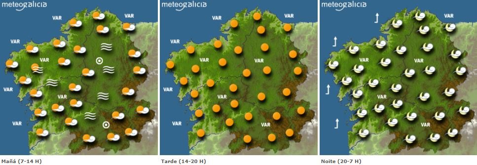 As temperaturas mínimas neste primeiro día do ano descenderán lixeiramente, mentres que as máximas seguirán sen cambios significativos ou con lixeiros ascensos. Os ventos soprarán frouxos de dirección variable durante toda a xornada, segundo informa MeteoGalicia.