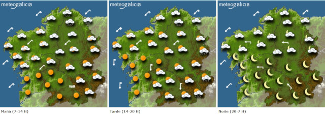 As temperaturas mínimas experimentará un lixeiro descenso, mentres que as máximas non rexistrarán cambios significativos. Moveranse así entre os 16 graos da Coruña, Ferrol e Lugo, e os 22 de O Pontevedra e Vigo.