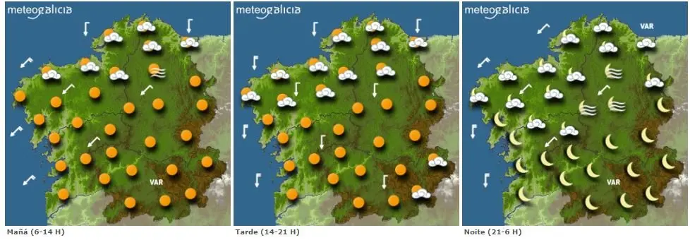 As temperaturas non terán cambios significativos. Os ventos soprarán de compoñente norte, frouxos en xeral, con intervalos moderados no litoral.