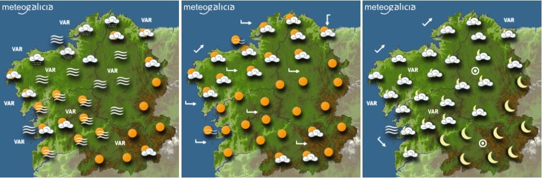 En cuanto a los termómetros, se registrará un ligero descenso. Las mínimas se moverán entre los 15 grados de Lugo y Santiago y los 18 de A Coruña. Las máximas estarán entre los 21 grados de la capital herculina y los 31 de Ourense.