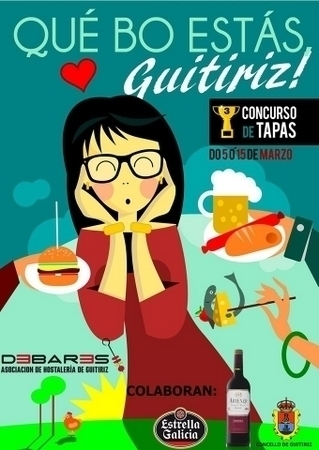 Entre las novedades de este año, la asociación de hostelería De Bares de Guitiriz promovió un concurso de carteles para elegir el que se convertiría en el encargado de anunciar esta tercera edición. En total, se presentaron al certamen artístico un total de 39 carteles y el elegido fue el de Jorge Pérez Polín, un vecino de Guitiriz que realizó un diseño colorido con una chica rodeada de tapas.