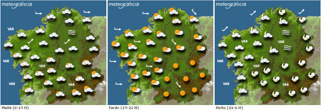 Os ventos soprarán frouxos variables pola mañá e de compoñente oeste pola tarde.