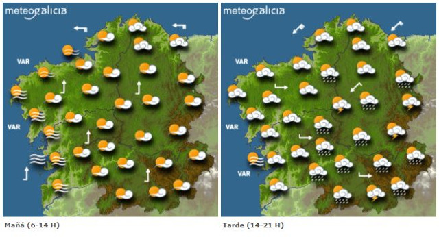 As temperaturas mínimas quedarán sen cambios e as máximas sufrirán un lixeiro descenso, excepto no norte de Lugo onde ascenderán lixeiramente.