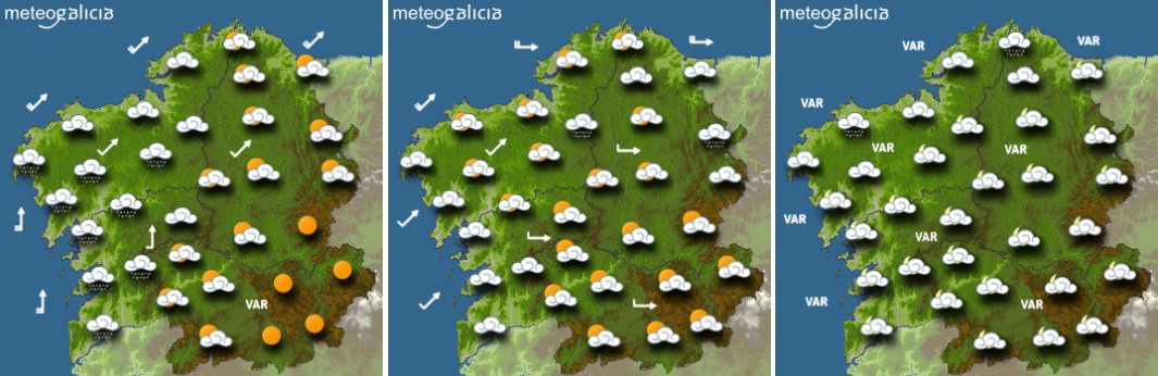 As temperaturas mínimas ascenderán lixeiramente mentres que as máximas sufrirán un lixeiro descenso. O vento soprará frouxo do suroeste.
