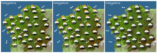 Con esta situación, prognostica Meteogalicia, os ceos estarán parcialmente cubertos, con choivas máis frecuentes na metade oeste. As temperaturas non terán cambios significativos.