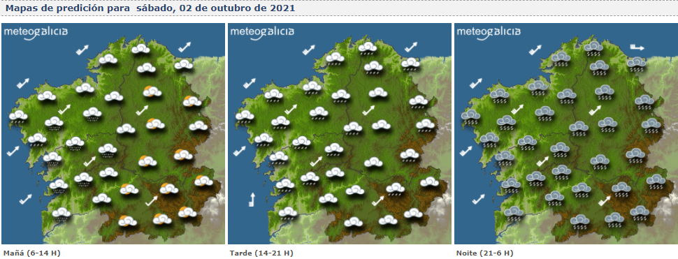 Así, como pronostica Meteogalicia, los cielos estarán cubiertos, con lluvias en la mitad oeste. Ya por la noche las precipitaciones llegarán a toda la Comunidad y serán localmente muy intensas.