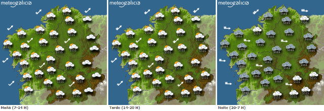Galicia terá un sábado de choivas, saraiva e ventos moi fortes no litoral