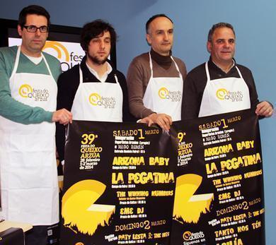 Presentaron ayer el programa festivo el alcalde arzuano, José Luis García; el responsable del concurso musical Queixo Maquetón, José Ramón Bernárdez; el presidente del consejo regulador de la denominación de origen Arzúa-Ulloa, Xosé Luís Carrera; y el director de la productora del Festival do Queixo, Alberto Alfonso.