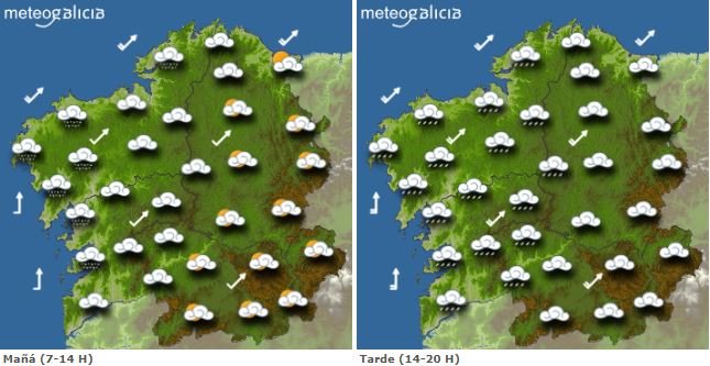 Galicia continuará el jueves bajo la influencia de los centros de bajas presiones que se forman al norte de la Comunidad. Con esta situación, se esperan cielos nublados, con lluvias más probables en la mitad oeste, pero que en las últimas horas del día llegarán a todo el territorio.