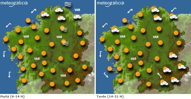 As temperaturas quedarán sen cambios significativos ou con lixeiros ascensos. O vento soprará frouxo de compoñente leste en xeral.