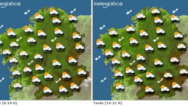Os chuvascos intermitentes, que serán máis ocasionais canto máis ao leste, marcarán a xornada deste mércores en Galicia, segundo a información publicada por Meteogalicia. Pola súa banda, as temperaturas mínimas non terán cambios, mentres que as máximas experimentarán un lixeiro descenso.