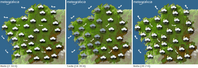 Xa pola tarde estas precipitacións iranse facendo máis persistentes e movéndose de oeste a leste.