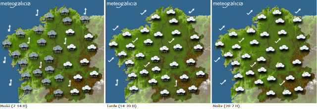 As temperaturas quedarán sen cambios significativos, con lixeiros ascensos das mínimas e descensos das máximas, polo que será unha xornada de moi pouca oscilación térmica.