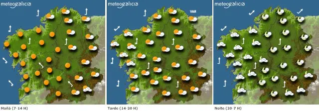 Á espera, no xoves non se agardan grandes novidades nas temperaturas, aínda que pode haber un aumento das máximas no terzo norte, e Lugo —cunha mínima dun grao— podería alcanzar os 16 de máxima. Máis ao sur, Pontevedra e Vigo chegarán aos 20 e Ourense, aos 19.