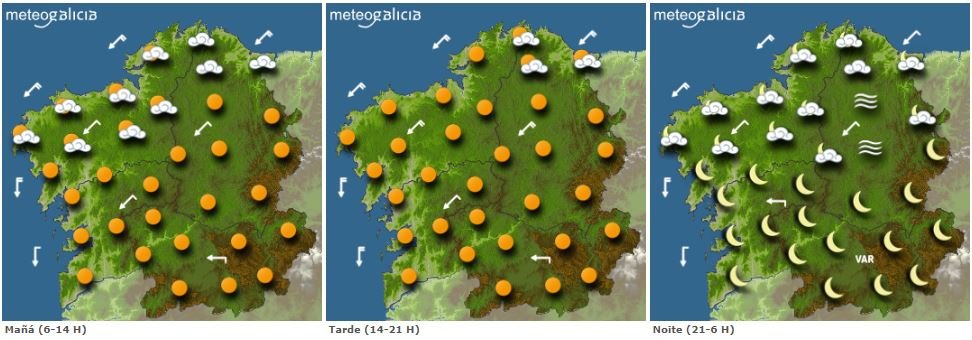 As temperaturas ascenderán lixeiramente para situarse nos seguintes valores: