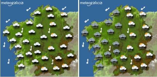 Según datos de Meteogalicia, los cielos estarán muy nublados o cubiertos con precipitaciones localmente fuertes, sobre todo en las provincias atlánticas.