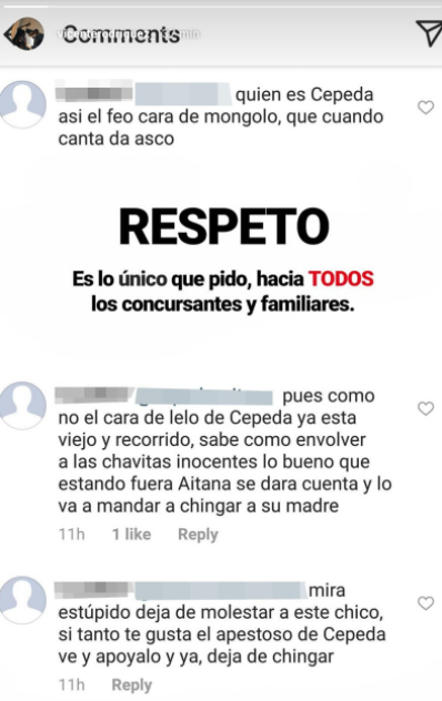 El chico se ha querido pronunciar sobre las críticas que ha recibido en los últimos días Cepeda y ha pedido que lo respeten. "RESPETO. Es lo único que pido, hacia TODOS los concursantes y familiares"