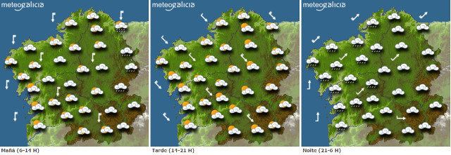 Deste xeito, espéranse ceos con intervalos nubrados, con máis claros canto máis ao oeste e posibilidade de chuvascos no leste das provincias de Lugo e Ourense.