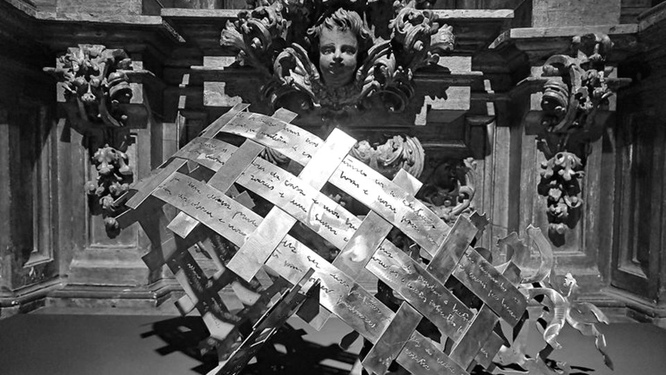 A IGREXA da Compañía, a carón da Facultade de Xeografía e Historia da Universidade de Santiago, converteuse nos últimos tempos nun singular espazo expositivo no que, en función da exposición que alí se desenvolve, téntase máis ou menos disimular o seu poderosísimo Barroco. E non un Barroco calquera, senón ese Barroco de placas tan típico da arte compostelana e que ten neste templo un marabilloso exemplo, con toda unha serie de retábulos abraiantes na súa talla e composición. De aí que non sempre sexa sinxelo propoñer a mostra dun traballo no seu interior, xa que a competencia é máis que evidente.