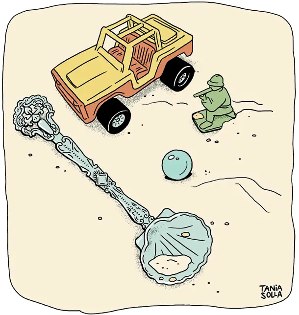 Años después, durante una mudanza, Ricardo encontró la caja. Allí estaba el cubo, la cuchara y todos sus descubrimientos: caramelos a medio comer, piedras, chapas y hasta alguna colilla. Antes de tirarlo todo, preguntó a sus padres si querían la cuchara. Ellos, entre risas, le contaron la verdadera historia del instrumento. Resulta que en la familia de la madre de Ricardo mantenían una tradición que les divertía mucho. Cada vez que alguien iba de viaje, buscaba el suvenir más cutre y horroroso y compraba un ejemplar para cada miembro de la familia. Aquella cuchara era uno de ellos. Podía tirarla.