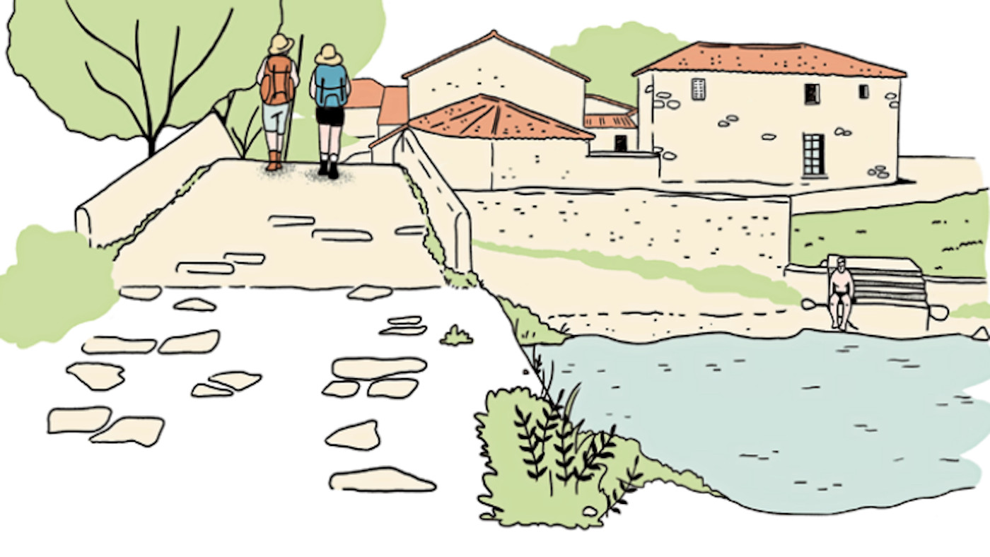 Así que tenemos un albergue casi milenario y una aldea diminuta pero preciosa. Muy cerca del albergue hay también un puente medieval que forzosamente es anterior al antiguo hospital de peregrinos, pues no se construía un hospital junto a un río si no había puente para cruzarlo, en este caso el río Iso. El entorno natural es espectacular. Puede verlo en fotos, como hice yo, pero las descripciones de quienes han disfrutado del lugar son más elogiosas que las fotos. No siempre una imagen vale más que mil palabras. De todas las imágenes que he visto, la que más me gusta es la que ilustra este texto, obra de Tania Solla, como siempre.