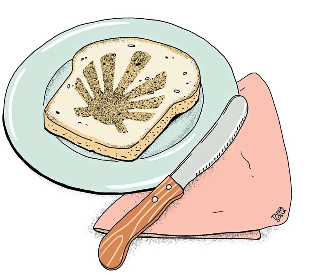 Fingió ante sí mismo que lo meditaba durante toda la mañana, aunque la decisión estaba clara desde el primer instante. No solamente estaba ahí la tostada; además su tostadora se había estropeado el día anterior y su madre le había dejado una que tenía en el trastero, y fue esa nueva tostadora la que le había enviado el mensaje. Aquello no podía ser casualidad. Esa misma tarde partió en tren hacia Roncesvalles para hacer el clásico Camiño francés.
