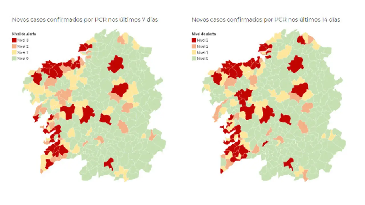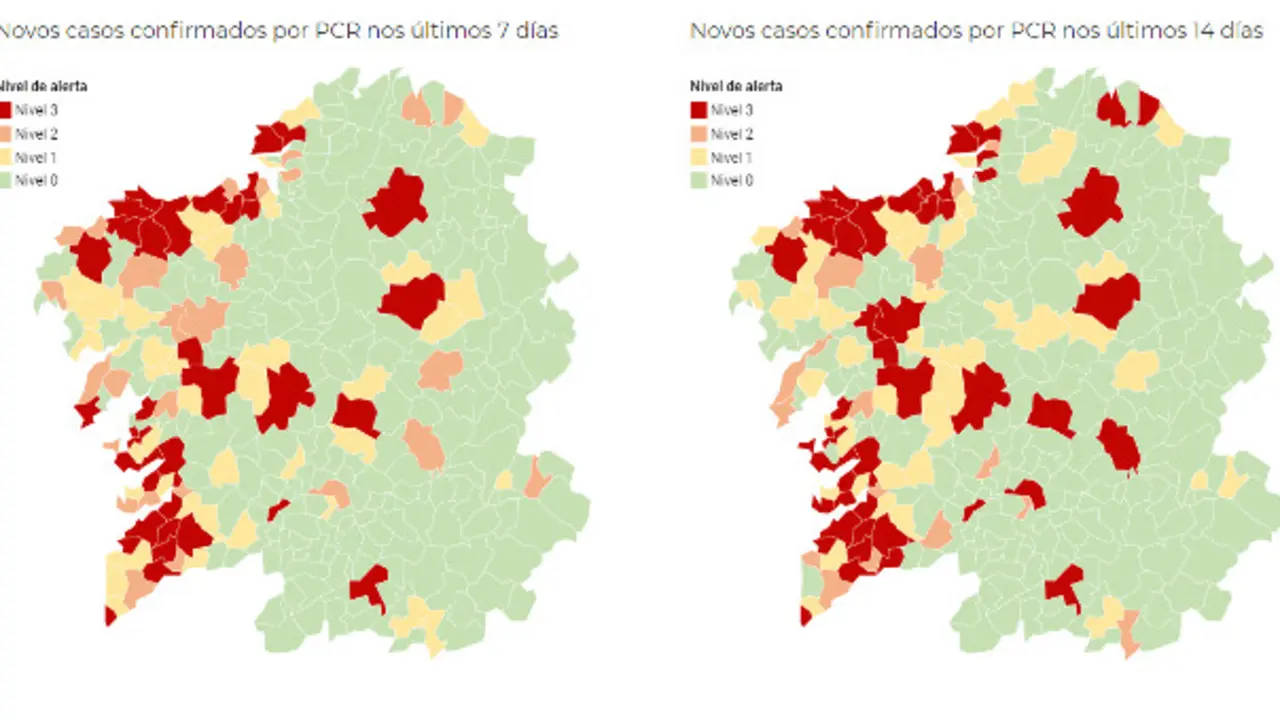 Os municipios en alerta vermella baixan a 36 A Coruña, Monforte, O Grove e Soutomaior saen do máximo nivel de risco 13/11/20