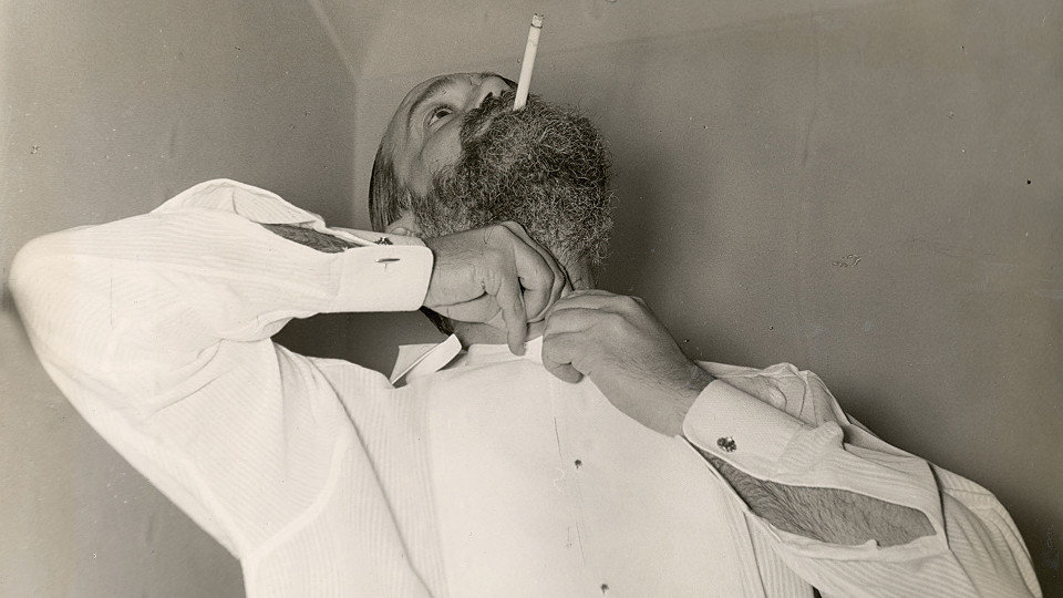 —¿Cómo se encuentra, don Pío? —preguntou o pintor camisa azul Alfonso Ponce de León.