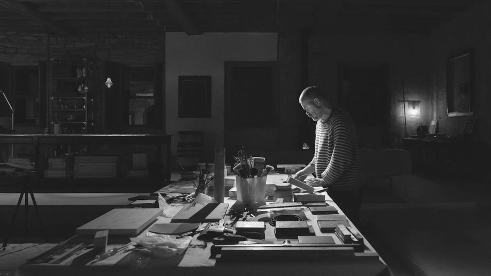 Acabou por comprar marcos de centurias xa vencidas, mesmo algúns do século XVI. "Os anteriores son de coleccionista, de prezos que non podo pagar", confesoume hai uns días. Falamos da súa exposición Traza, que está na galería coruñesa Vilaseco. Os marcos foron importantes para dotar de luz aos lenzos antes de que se inventase a iluminación forzada. Eu descoñecía ese coleccionismo. Sabía que a galería Gemälde de Dresde, fundada en 1746, ten 1.400 pinturas co mesmo marco de madeira gravada e dourada. Goethe visitou ese museo en 1768: