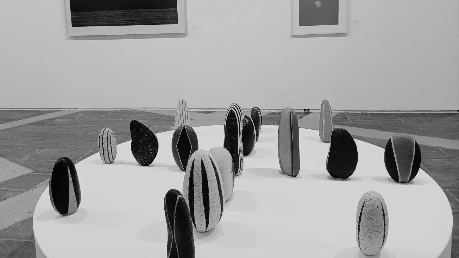 Manuel Ruibal expón así o seu traballo en Lugo por primeira vez tras sesenta anos de loita artística que o levaron a transitar por diferentes momentos da nosa plástica, pero sempre mantendo unha autenticidade e discurso propio que o fixo moverse por unha figuración nos anos sesenta para irse decantando polo informalismo nos anos seguintes, nos que participou en mostras do colectivo Atlántica ata chegar a ese «reducionismo próximo á mística zen», como suliña o comisario da mostra, Antón Castro, bo coñecedor da obra do artista pontevedrés, co que compartiu moitos deses momentos na plástica galega, establecendo unha alianza de complicidade e amizade que se nota no bo facer desta mostra que, dende esa montaxe tan atinada, potencia o discurso que conteñen as súas obras, obras entre as que tamén nos atopamos ese traballo que Manuel Ruibal realiza sobre a propia natureza, intervindo en pedras que se converten en grandes monumentos espallados por diferentes puntos da xeografía peninsular ou, como acontece nesta mostra, activando sobre pedras de pequeno tamaño, cantos rodados, nos que aplica a súa mirada pictórica e que de novo nos conecta con esa condición panteísta da obra humana, esa maneira de tentar domesticar unha natureza na que o home, como xa fixera o home primitivo, deixa a súa pegada nun xeito de apropiacionismo e dominación.